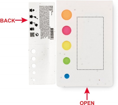 Siemen muistilappu sarja, sisältää 5 eri väristä indeksi tarralappua. Tämä muistilappu sarja on ainutlaatuinen, kansi on täynnä punaisia ​​unikonsiemeniä. Kun muistilehtiö on tyhjä, voit istuttaa kannen maahan kasvattaaksesi kauniita kukkia.