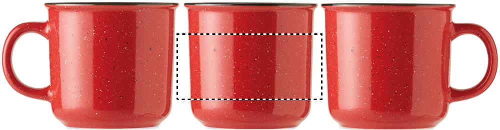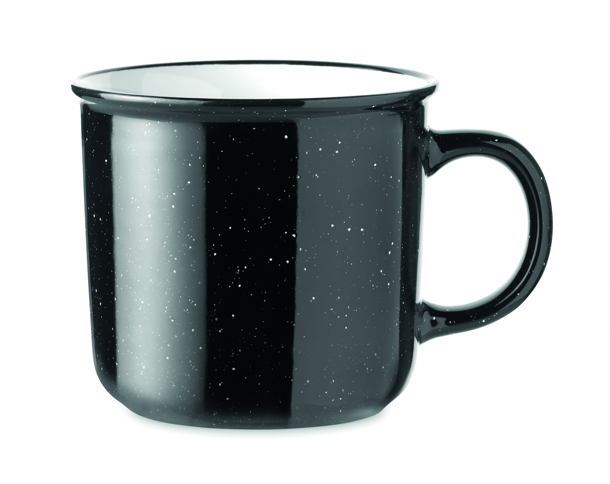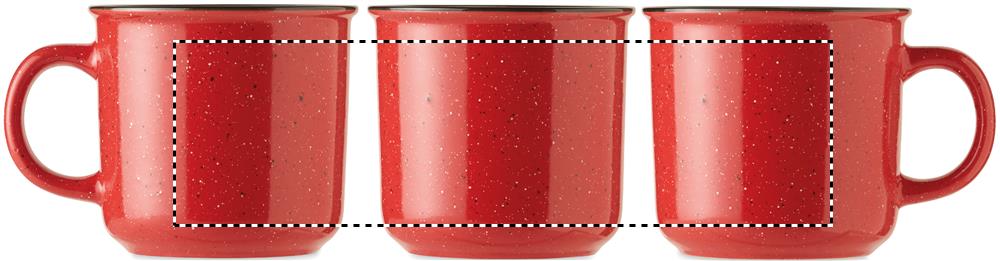 Keraaminen vintage tyylinen 400 ml muki, pilkullisen kuvioinnin vuoksi kuviointi näkyy logossa painatuksen jälkeen.