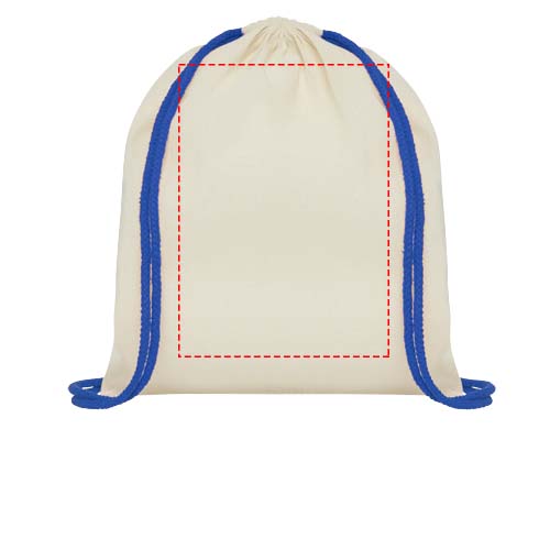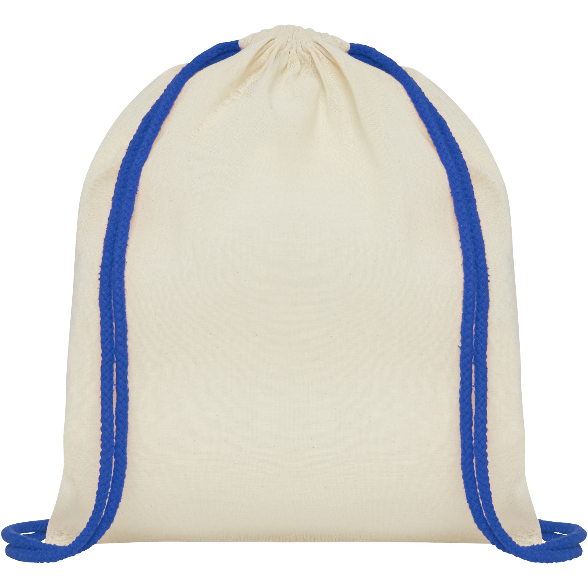 Kiristysnyörillinen reppu, jossa päälokero, värikkäällä kiristysnyörillä. Kestää jopa 5 kg painon.