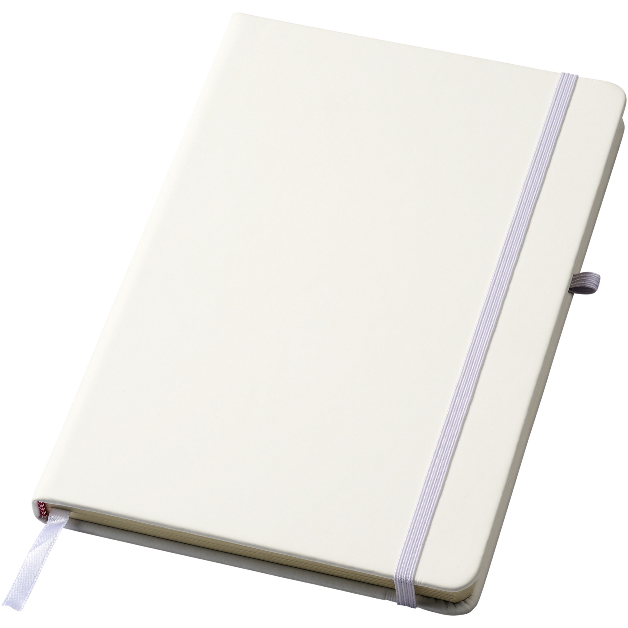 A5 muistikirja, kuminauhasuljenta, kynälenkki ja sivumerkki. Sisältää 96 sivua 70g/m2 viivallista paperia. Pehmeän tuntuinen PU-kansi.