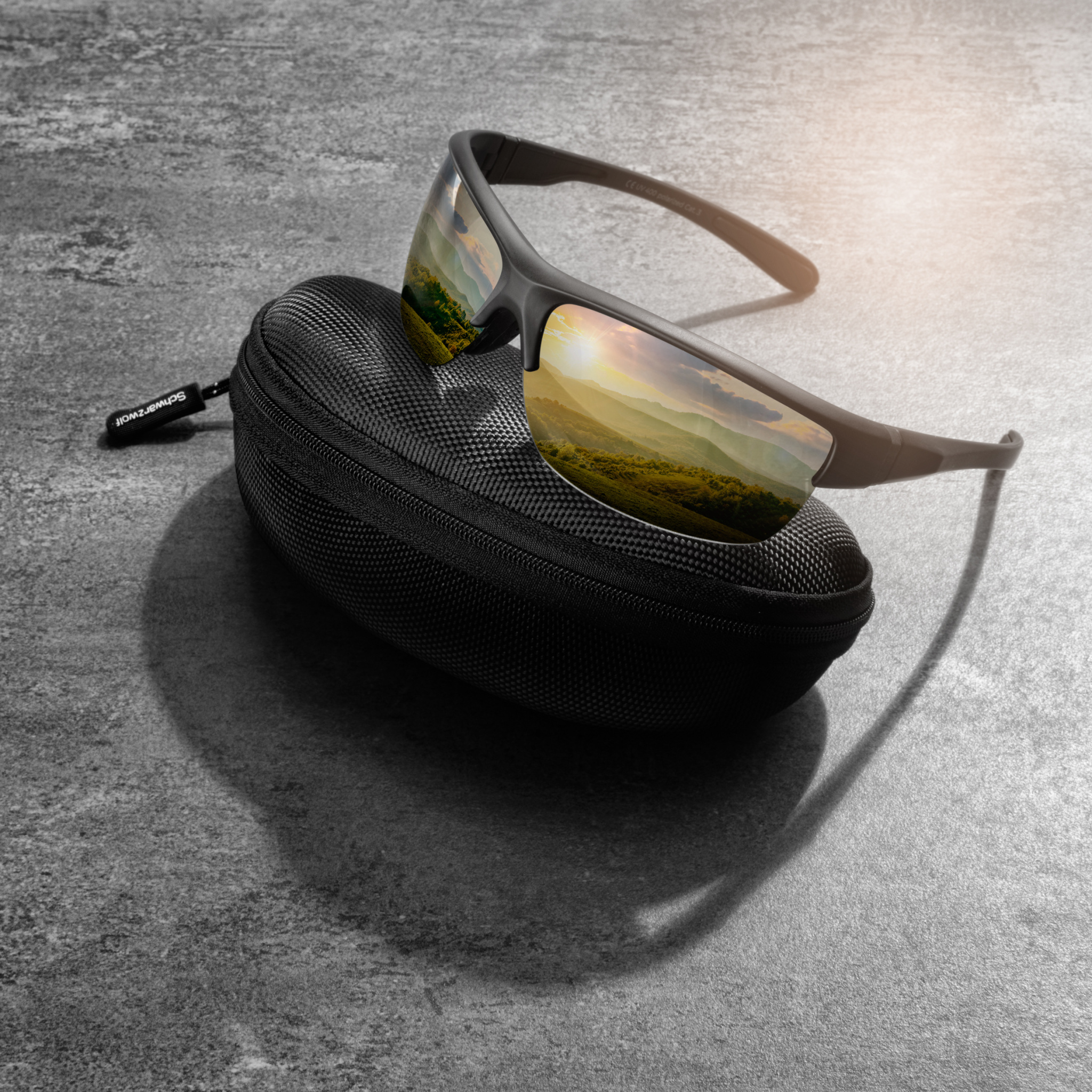 Polarisoidut Schwarzwolf-aurinkolasit mustilla linsseillä. Lasit on valmistettu mustista ja niissä on UV 400 -suoja. Polarisoidut lasit vähentävät epämiellyttävää häikäisyä ja silmien väsymistä. Mukana musta mikrokuitupussi ja käytännöllinen kova musta kotelo vetoketjulla. Sisältää valkoisen mikrokuituisen puhdistusliinan, joka soveltuu sublimaatioon.