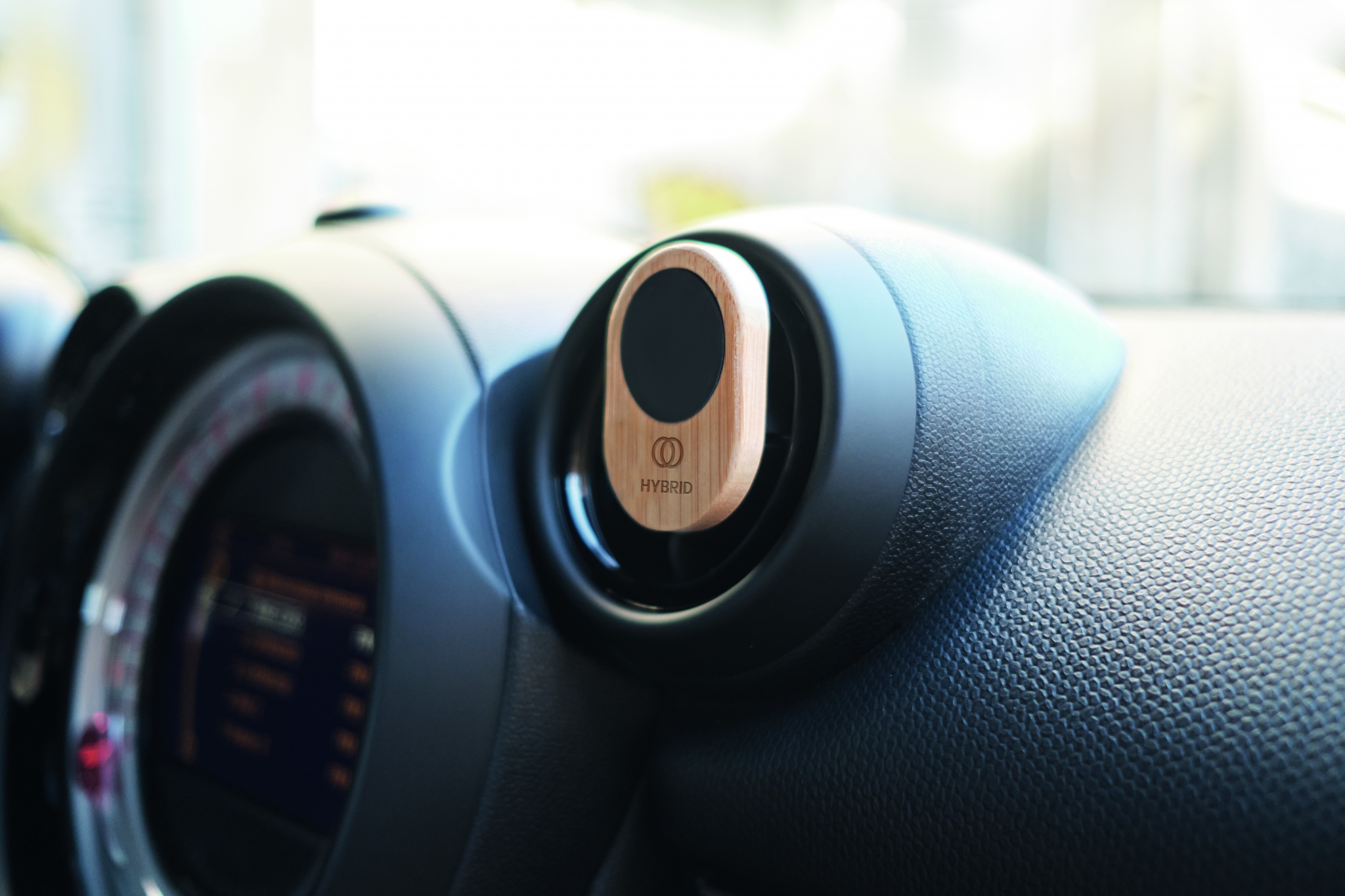 Magneettinen auton ilmanvaihtoaukkoon kiinnitettävä puhelinpidike bambumateriaalista.
