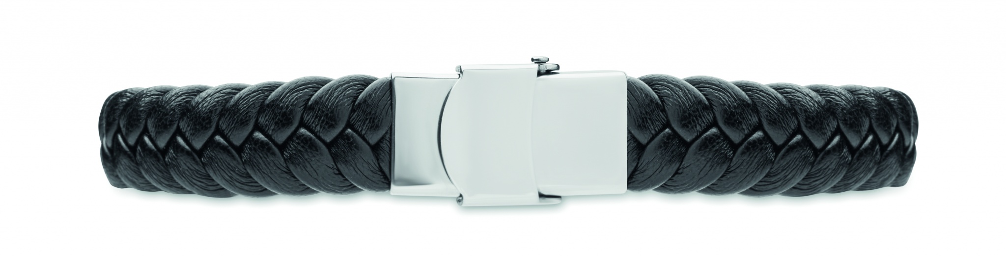 Punottu tekonahkainen ranneke, jossa on kiillotettua terästä. Push-lock lukko. Ranteen ympärysmitta: 21 cm.