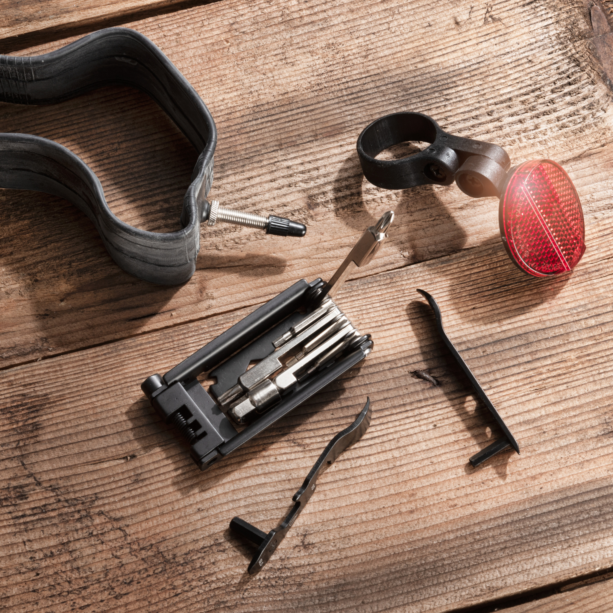Monikäyttöinen Schwarzwolf-työkalu pyöräilijöille. Sisältää 22 työkalua: torx-ruuvimeisseli (3 kokoa), pullonavaaja, litteä ruuvimeisseli, Philips-ruuvimeisseli, 2 rengasvipua, ketjunkatkaisija, kuusioavain (2 kokoa), puolityökalu (2 kokoa), 2 rullaa, kuusioavain (7 kokoa) ).