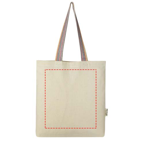 Rainbow 180 g/m² kangaskassi kestävämpi vaihtoehto tavalliseen puuvillakassiin verrattuna. Tuotannossa kierrätetystä puuvillasta valmistetussa ostoskassissa on kantokahvoina 25 cm:n pituiset sateenkaarihihihnat sekä 3,5 cm:n pohjalevike, joka antaa hieman lisää tilaa tavaroille. Kantokyky 5 kg.