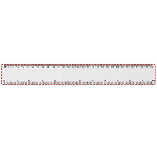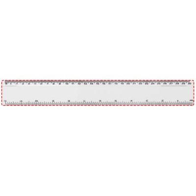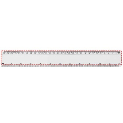 Tukeva muovinen viivain, johon on merkitty tuumat ja senttimetrit. Huomioithan, että myös viivaimen mitat painetaan logopainatuksen yhteydessä. Tuotetta ei voi tilata ilman painatusta.