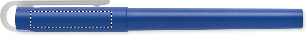Geelimustekynä, jonka runko on valmistettu RPET materiaalista. Sininen muste.