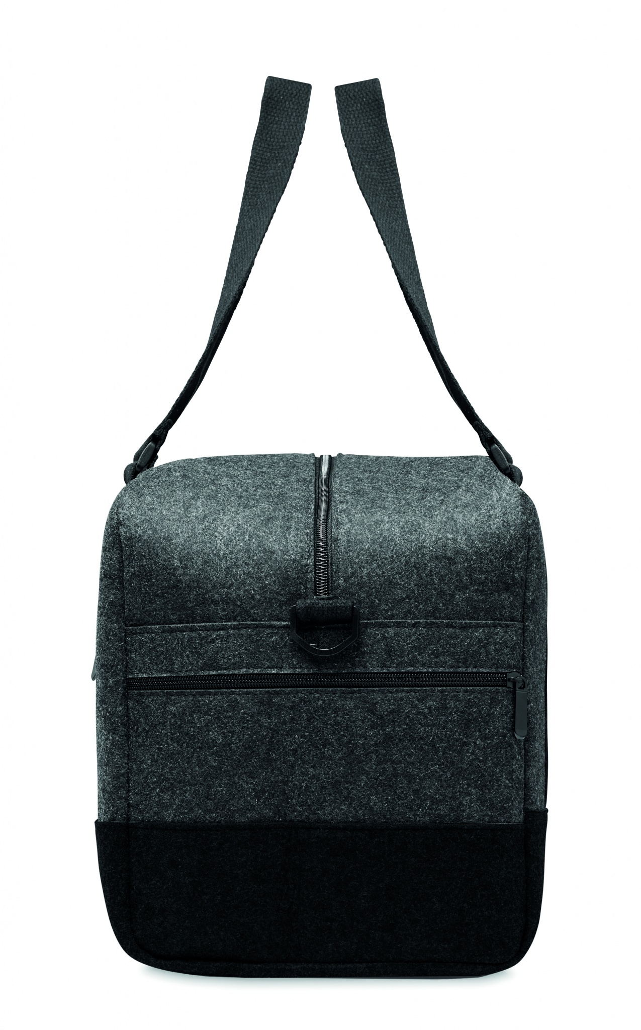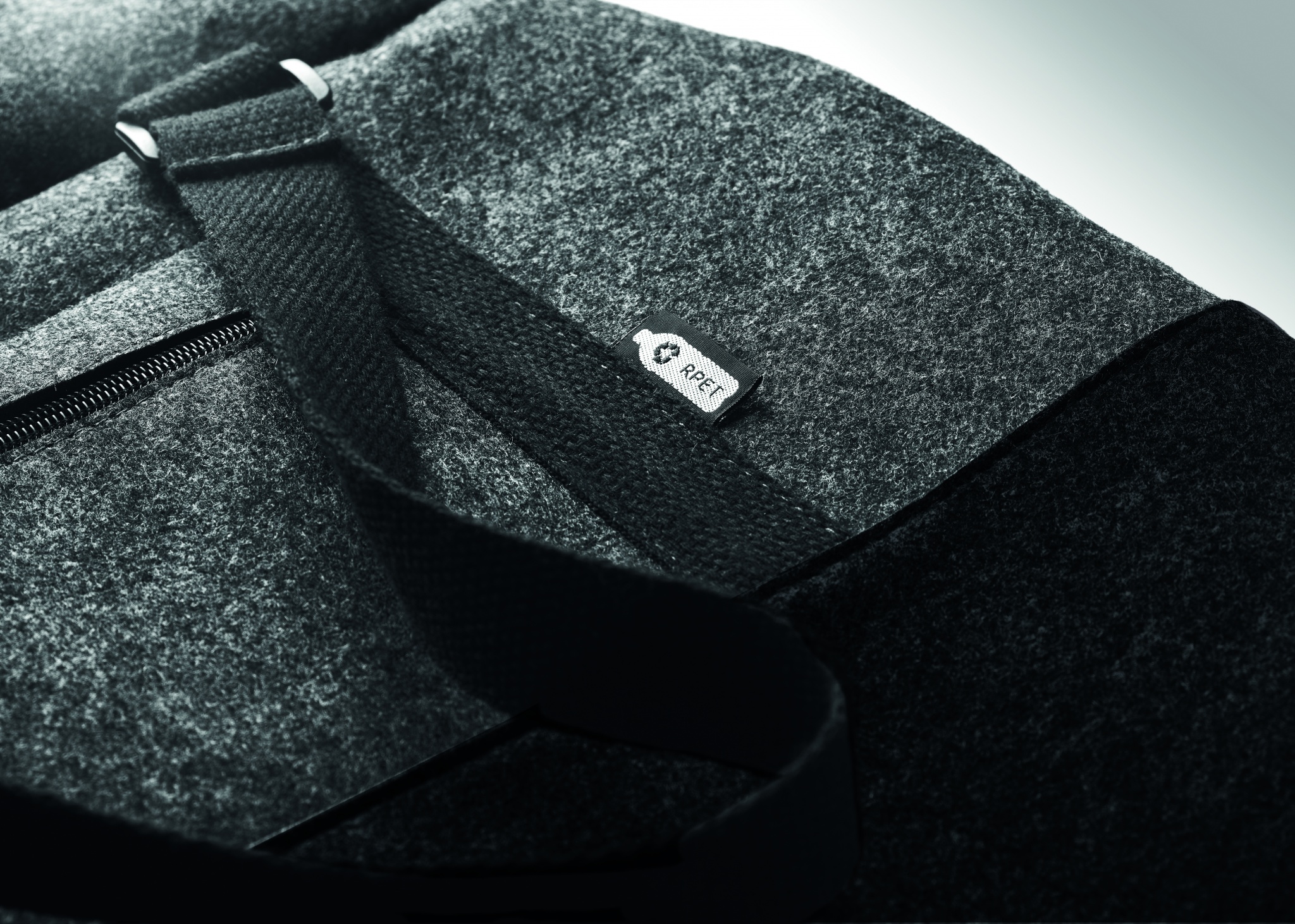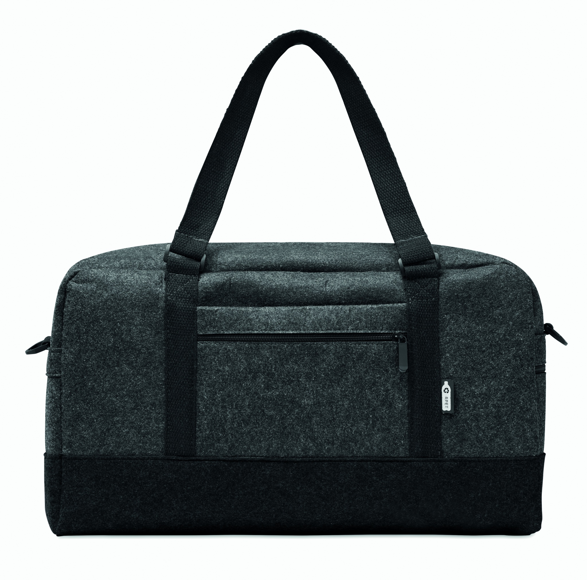 RPET huopakassi vetoketjullisilla etutaskuilla. Irroitettavalla/ säädettävällä olkahihnalla.