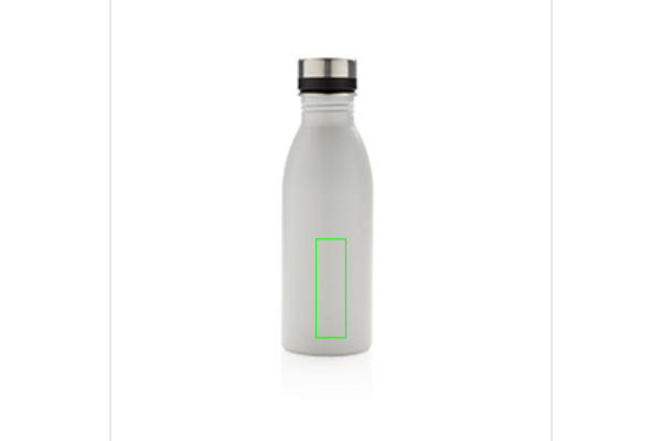 Tämä täydellisenkokoinen ja kevyt, uudelleen käytettävä pullo on valmistettu kestävästä, ruostumattomasta teräksestä. Tiivis ja täydellinen jokapäiväiseen käyttöön nestetasapainon ylläpitämiseksi. Suositellaan vain kylmälle vedelle. Monissa eri väreissä. Luonnonvalkoisen värinen pullo on PMS-värissä Cool Grey 1. Sisältö: 500 ml.