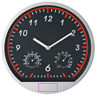 Seinäkello tyylikäs urheilumuotoilu. Kellossa on lämpömittari ja kosteusmittari. Painamme logosi kuuden alle olevaan kehykseen. Ei sisällä yhtä AA-paristoa (tilaa se heti, katso viimeinen sivu tai artikkeli 999300).