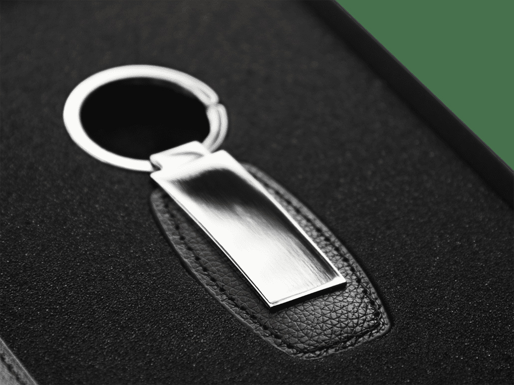 Sisältää nahkaisen avainrenkaan