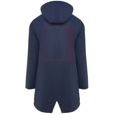 Vedenpitävä naisten sadetakki. Lipallinen huppu. Lämpösaumatut vetoketjut ja saumat. Mustat kontrastiväriset yksityiskohdat. Kaksi sivutaskua vetoketjuilla. Takaosan helmassa halkio. Irrotettava tuoetemerkki. Vedenpitävä. Kuvan malli on 179 cm pitkä ja hänellä on päällään koko S.