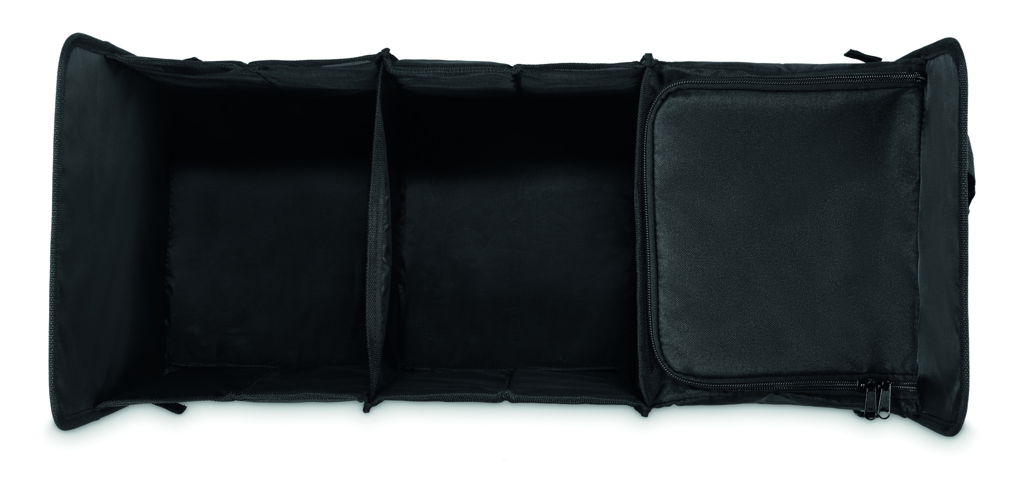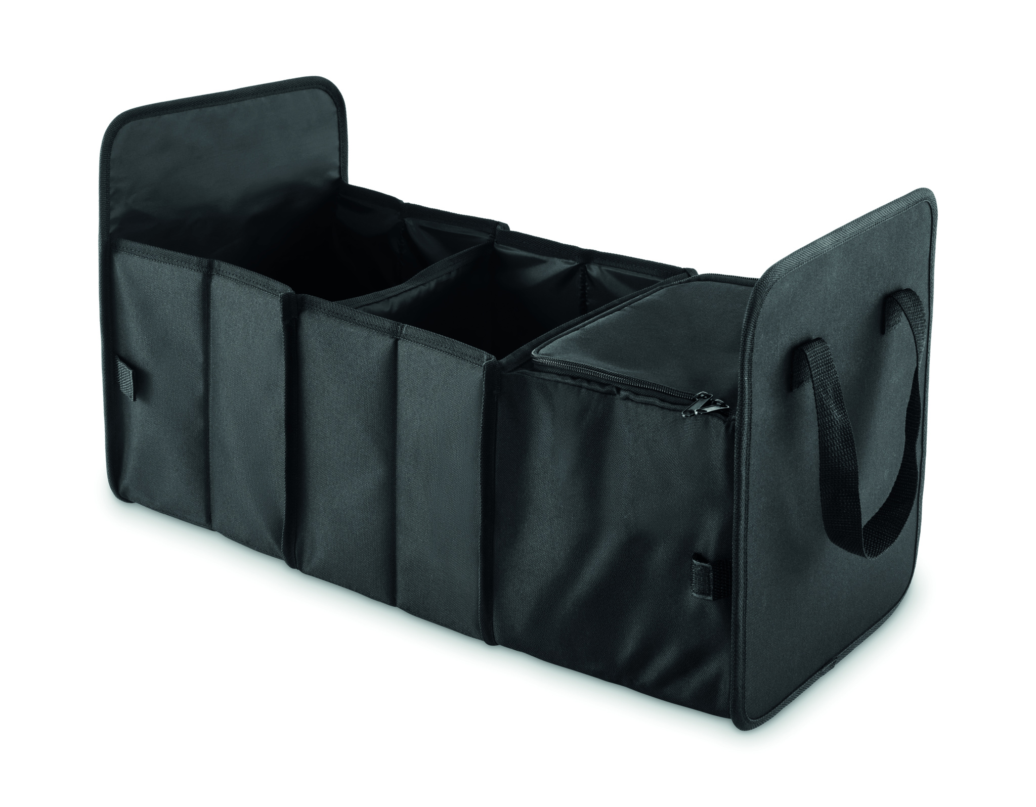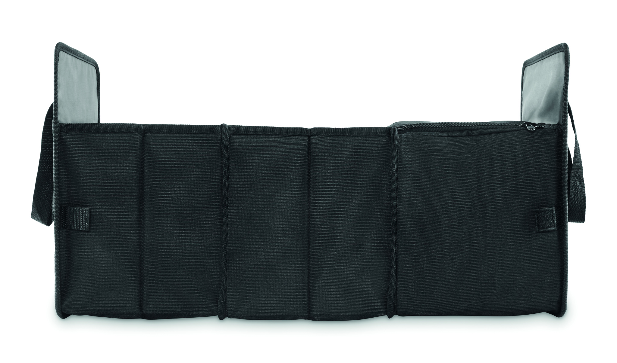 Kokoontaitettava autonjärjestäjä 600D RPET-polyesteristä, 3 lokeroa, joista yksi kylmälokero.