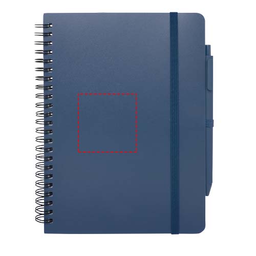 Kovakantinen Thalaasa A5-muistivihko on valmistettu kierrätetystä merimuovista ja siinä on 80 viiva-arkkia 70 g/m²:n kermanväristä paperia. Muistikirjassa on pyöristetyt kulmat, kuminauhasuljin ja kynälenkki. Kuulakärkikynä on myös valmistettu kierrätetystä merimuovista, musta muste. Kirjoituspituus: 1000 metriä. Kärjen paksuus: 1,0 mm.