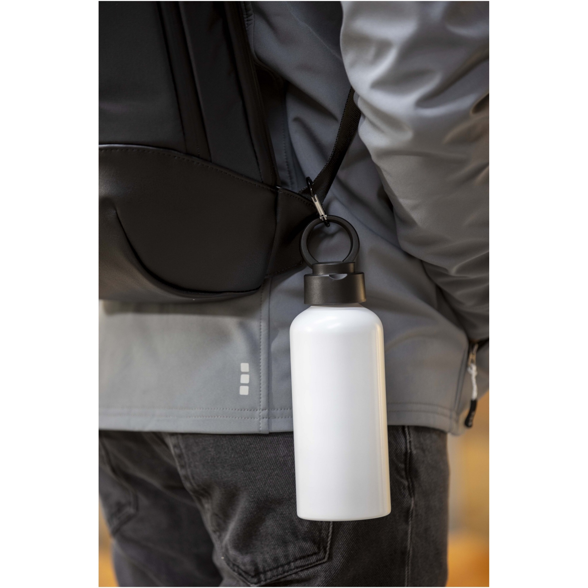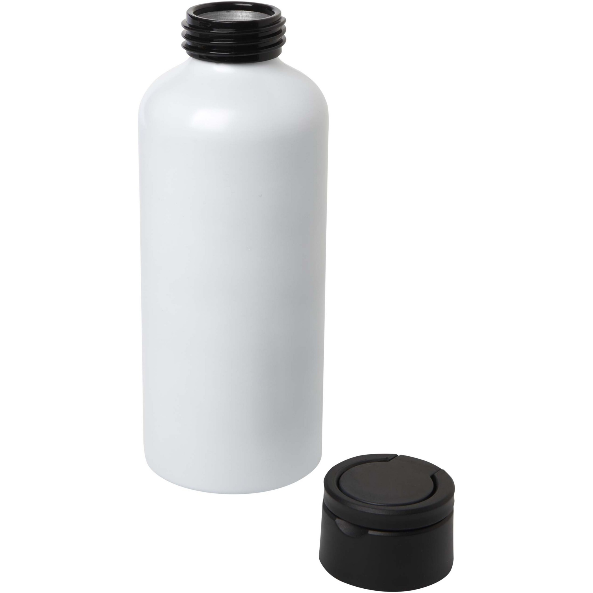 Tyylikkäästi muotoiltu RCS-sertifioitu kierrätetystä alumiinista valmistettu vesipullo. Mukana kierrätysmuovista valmistettu kansi, jossa on kantolenkki. Kevyt ja helppo kuljettaa. Tilavuus: 600 ml.