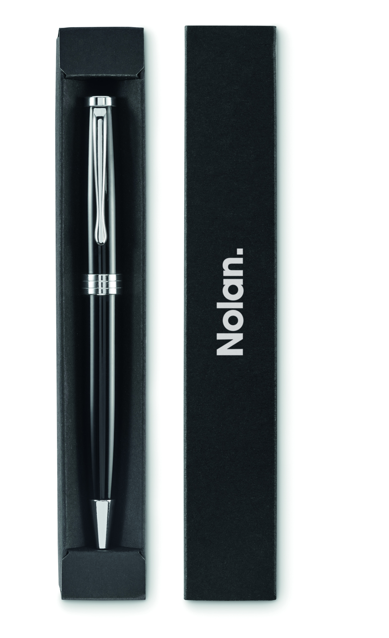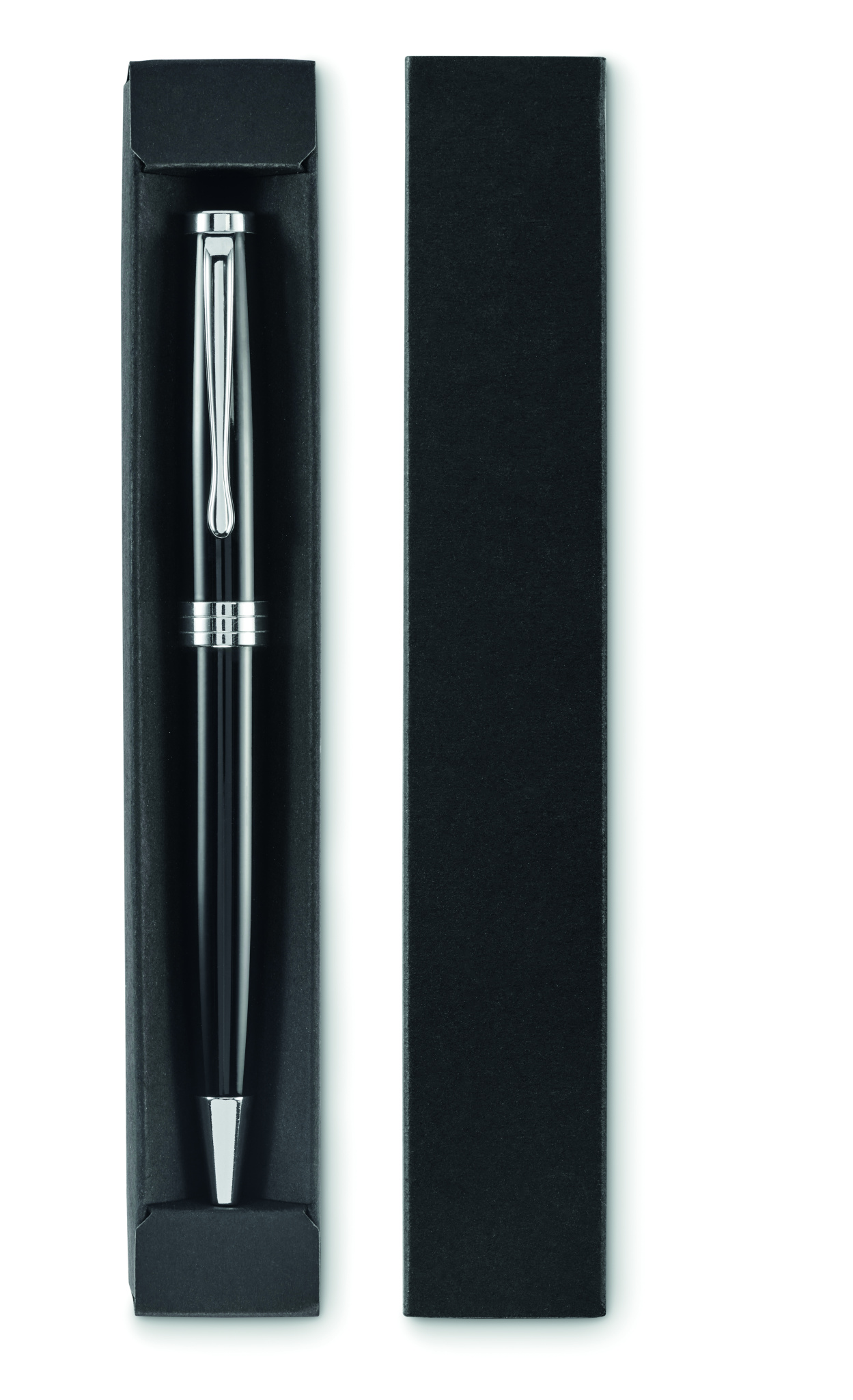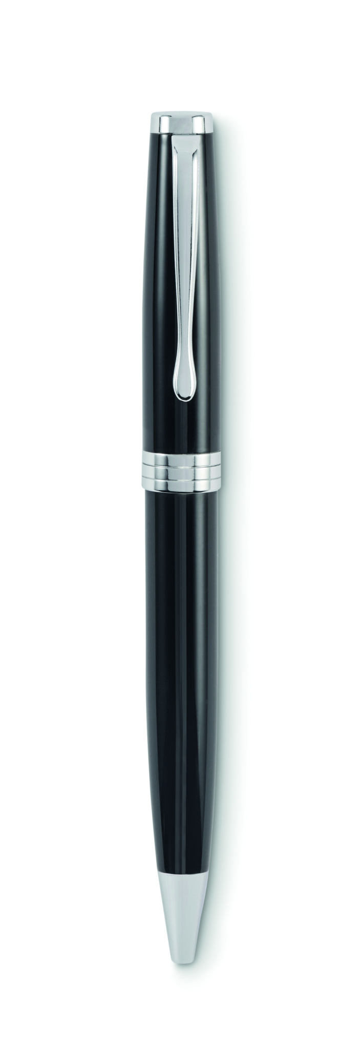 Kierrettävästä ruostumattomasta teräksestä valmistettu kuulakärkikynä. Sininen muste. Toimitetaan lahjapakkauksessa.