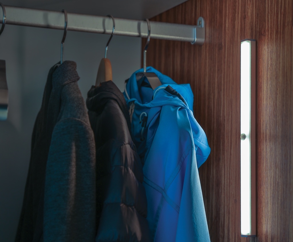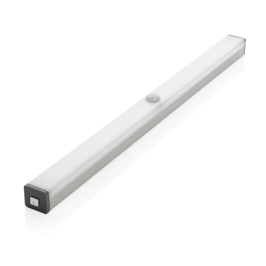 Alumiininen LED-nauhainen liiketunnistin 20 LED-valolla. Magneettinen takapuoli, jonka avulla kiinnitys metallipintoihin on helppoa. Sisältää kaksi magneettitarraa kiinnitettäväksi ei-magneettisiin pintoihin. Sopii hyvin varastoon, työpöydän yläpuolelle, käytävään tai vaatekaappiin. Kaksi käyttötilaa: jatkuva valaistus tai valon syttyminen liiketunnistimen havaitessa liikettä. Jos liikettä ei havaita 35 sekuntiin, sammuu valo itsestään. 500mAh:n litiumakku jopa 3.5 tunnin käyttöajalla. Sensorin etäisyys jopa 3 metriä. 30 lumenia. USB uudelleenladattava akku mukana toimitettavalla PVC-vapaalla mikro USB-kaapelilla.