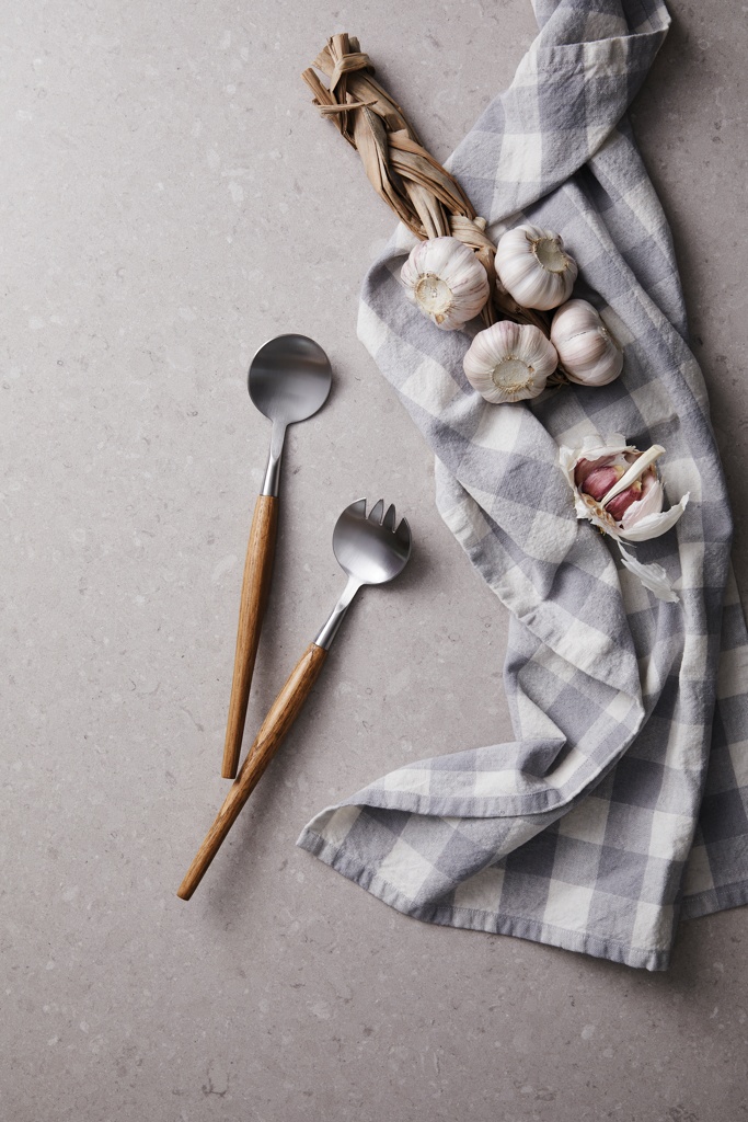 Klassisen kauniit rosteriset salaattiottimet jonka varret ovat tammea. Skandinaavinen minimalistinen muotoilu kruunaa arjen ja juhlan ruokapöydän kattauksen.