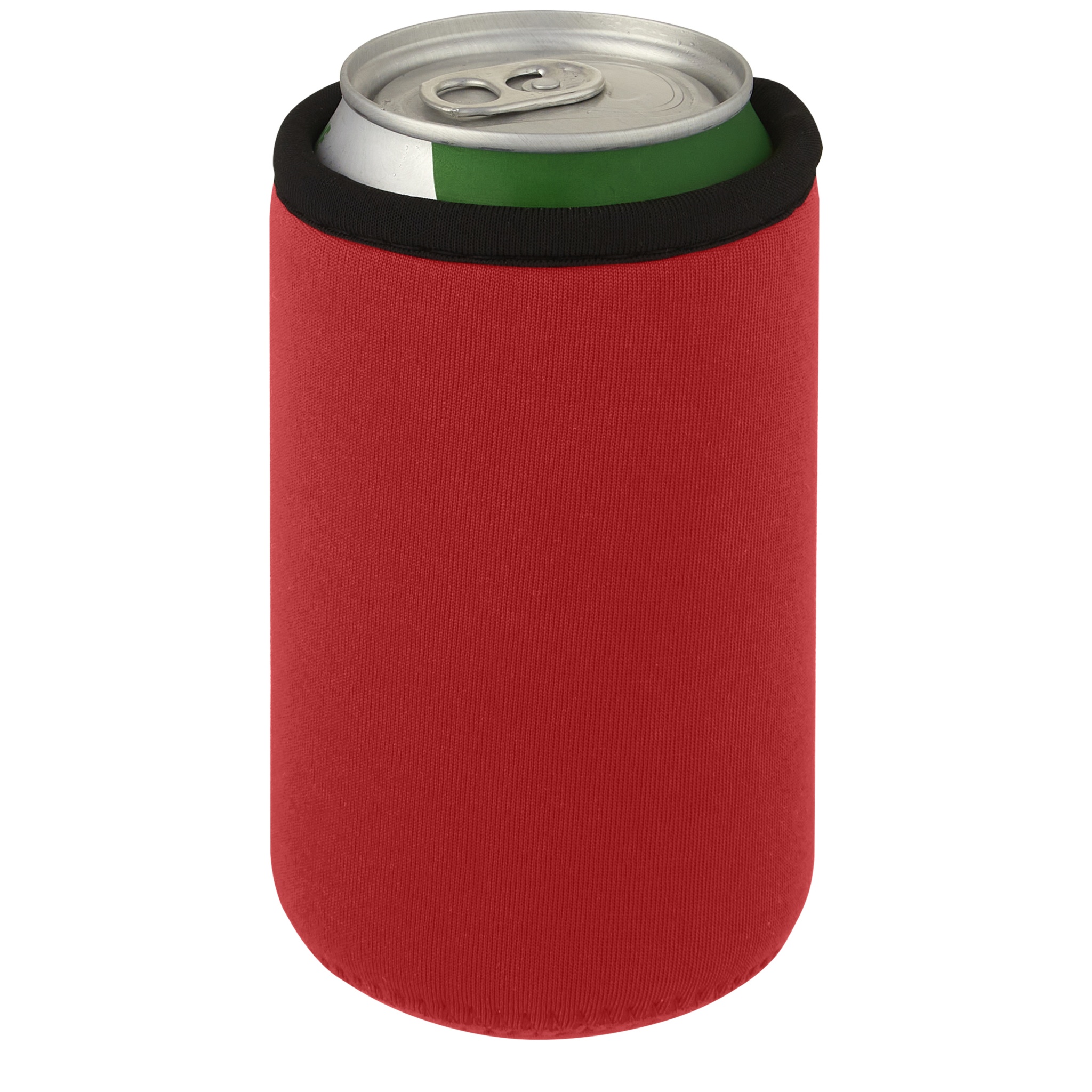 Juomatölkin jäähdytin kierrätetystä neopreenistä, joka mahtuu taiteltuna helposti taskuun tai laukkuun. Siinä oleva lisäeristys pitää juoman viileänä pidempään ja tekee tölkistä miellyttävän pidellä kädessä.