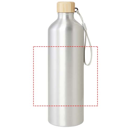 RCS sertifikuotas perdirbto aliuminio vandens butelis su stilingu bambuko dangteliu. Šis lengvas vienos sienelės buteliukas yra su dirželiu, kad jį būtų lengva nešiotis. Bambukas yra iš tvarių, ekologiškai ir socialiai atsakingų šaltinių. Talpa 1000 ml. Skalbti tik rankomis.