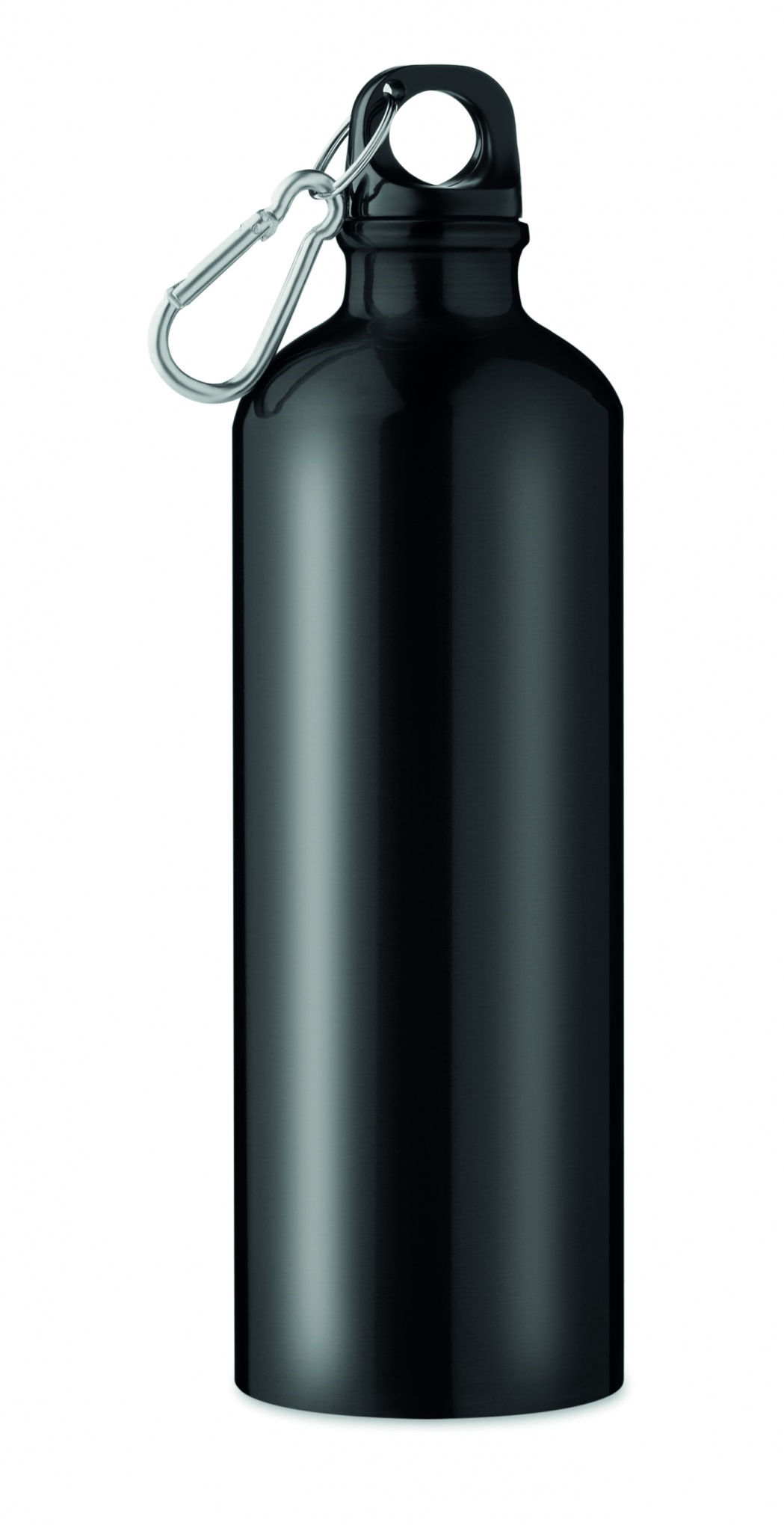 Viengubo sienelės 750 ml aliuminio butelis su karabinu ir pritaikoma spauda, Juoda