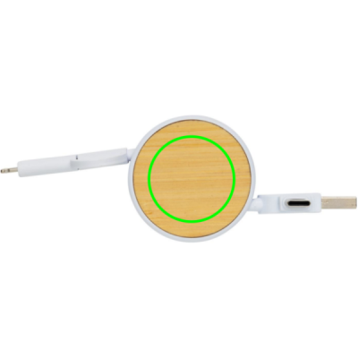 Kompakts un viegli pārnēsājams izvelkamais vairāku kabelis, kas izgatavots no sertificētiem pārstrādātiem materiāliem. Nāk ar 5 dažādiem savienotājiem: USB C ieeja, USB A ieeja, C tipa izeja, IOS izeja un mikro USB izeja. Tas arī ļauj izmantot kabeli ar C tipa izvadierīcēm, kas ir iekļautas jaunākās paaudzes tālruņos un Macbook datoros. Kabelim ir arī USB A izejas ieejas opcija, lai tas varētu uzlādēt jebkuru ierīci no jebkura izvades avota. Korpuss izgatavots no FSC bambusa un RCS sertificēta pārstrādāta ABS, kabeļi izgatavoti no RCS sertificēta pārstrādāta TPE materiāla. Kopējais pārstrādātais saturs: 63% no kopējās preces svara. Maksimālais kabeļa garums: 100 cm. Iepakots FSC jauktā kraft uzmavu iepakojumā. RCS sertifikācija nodrošina pilnīgu sertificētu pārstrādātā materiāla piegādes ķēdi. Bez PVC.