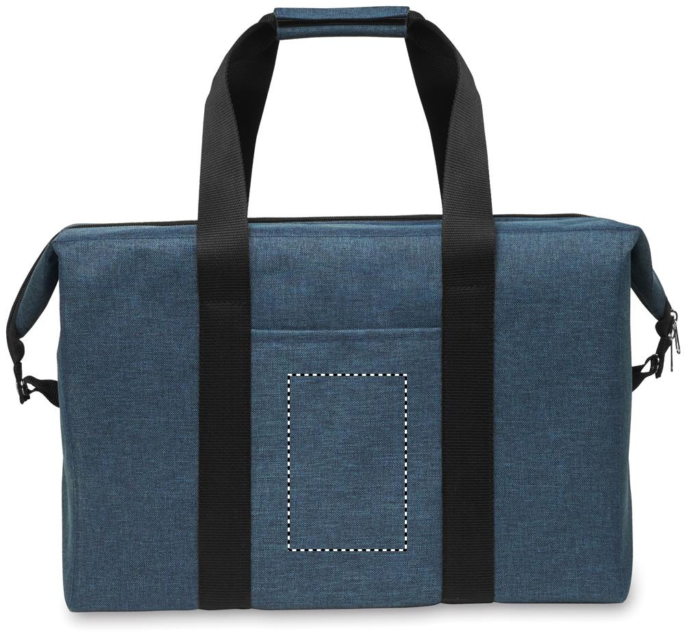 Cooler bag in RPET 300D cationic polyester. Isolation material: 3mm foam laminated with aluminium foil. Capacity 3L.