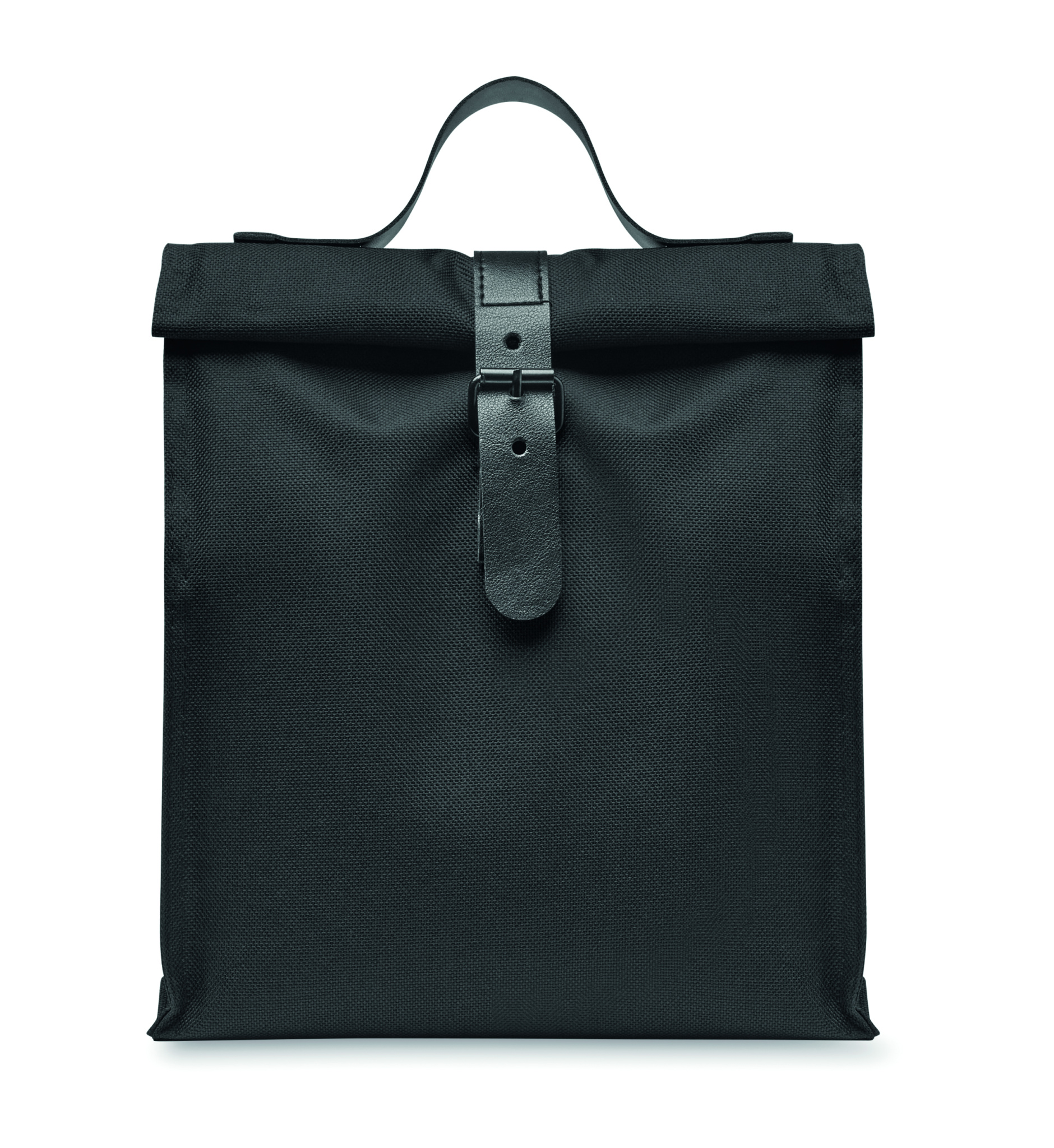 600D RPET polyester insulated roll top lunch cooler bag with PU handle and closure. Insulation: 3mm PE foam with PEVA.