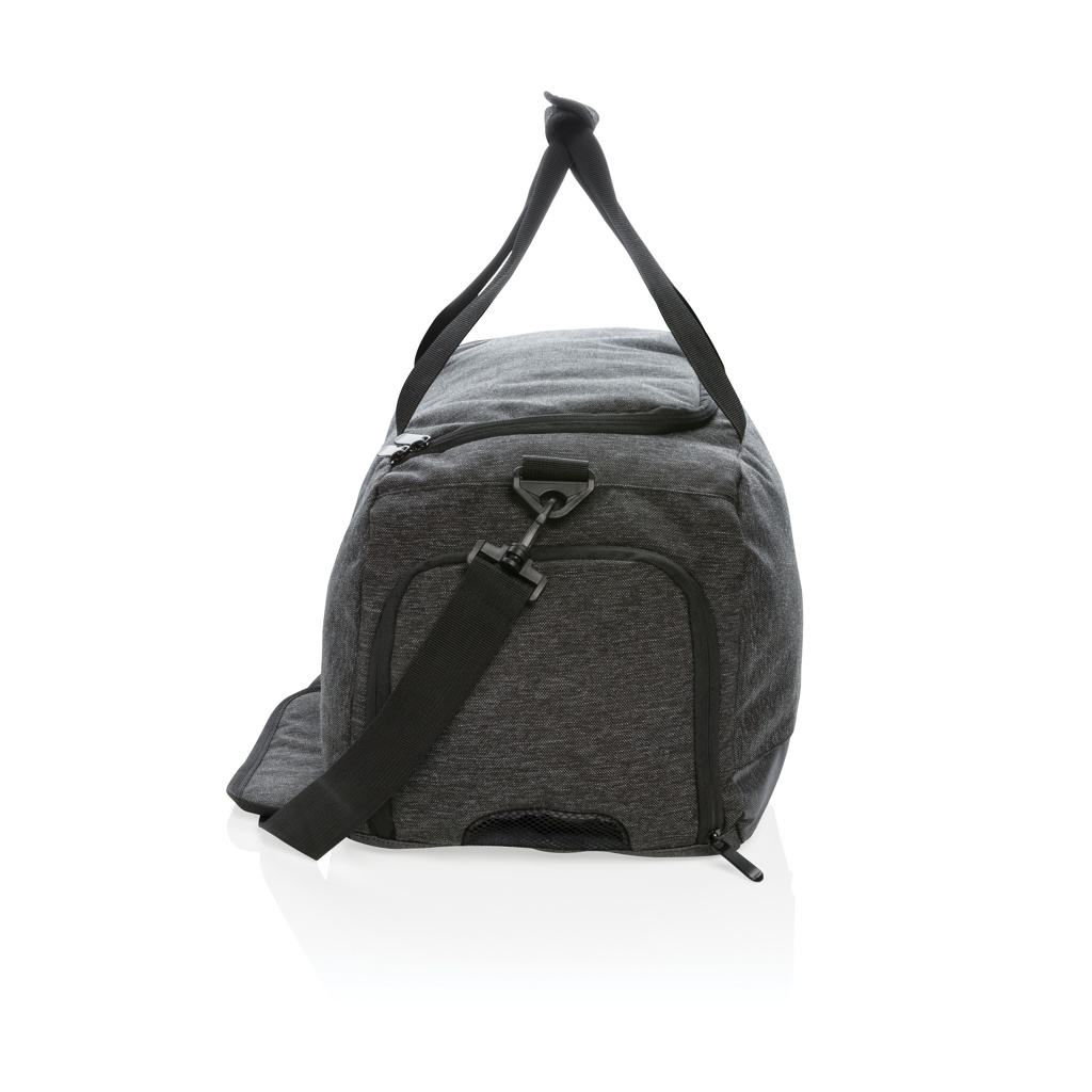 Эта удобная дорожная сумка 900D идеально подходит для любого активного приключения и тренировки в спортзале. Она изготовлена из прочной полиэфирной ткани и имеет водостойкое покрытие для защиты от грязных полов спортзала или мокрых полей. Детализированная с усиленными ручками и мягким плечевым ремнем, который обеспечивает универсальный вариант переноски. Эта дорожная сумка имеет вместительное основное отделение с внутренним карманом на молнии для хранения наличных или ценных вещей, а также дышащий карман для обуви. Передний карман на молнии с удобным хранением для вашего мобильного телефона, ключей и других часто используемых аксессуаров. Не содержит ПВХ.