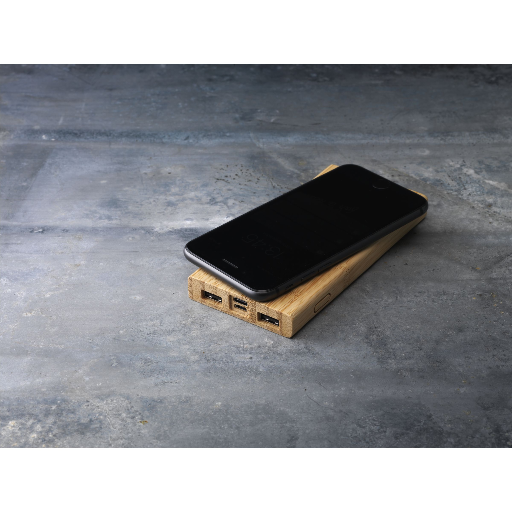 Мощный беспроводной зарядный аккумулятор из натурального бамбука со встроенным литий-полимерным аккумулятором (8000 мАч). Быстро заряжает смартфоны или планшеты через USB-порт и включает в себя встроенную функцию беспроводной зарядки 5 Вт для мобильных устройств, поддерживающих беспроводную зарядку QI (новейшие поколения Android и iPhone). Вход 5 В/2 А (Type-C и micro-USB). Выход: 5 В/2 А. Беспроводной выход: 5 В/1 А (5 Вт). С индикаторами и кнопкой включения/выключения. Включает в себя зарядный кабель с разъемом USB-C, разъем USB-C и руководство пользователя. Каждый предмет в индивидуальной коробке.
