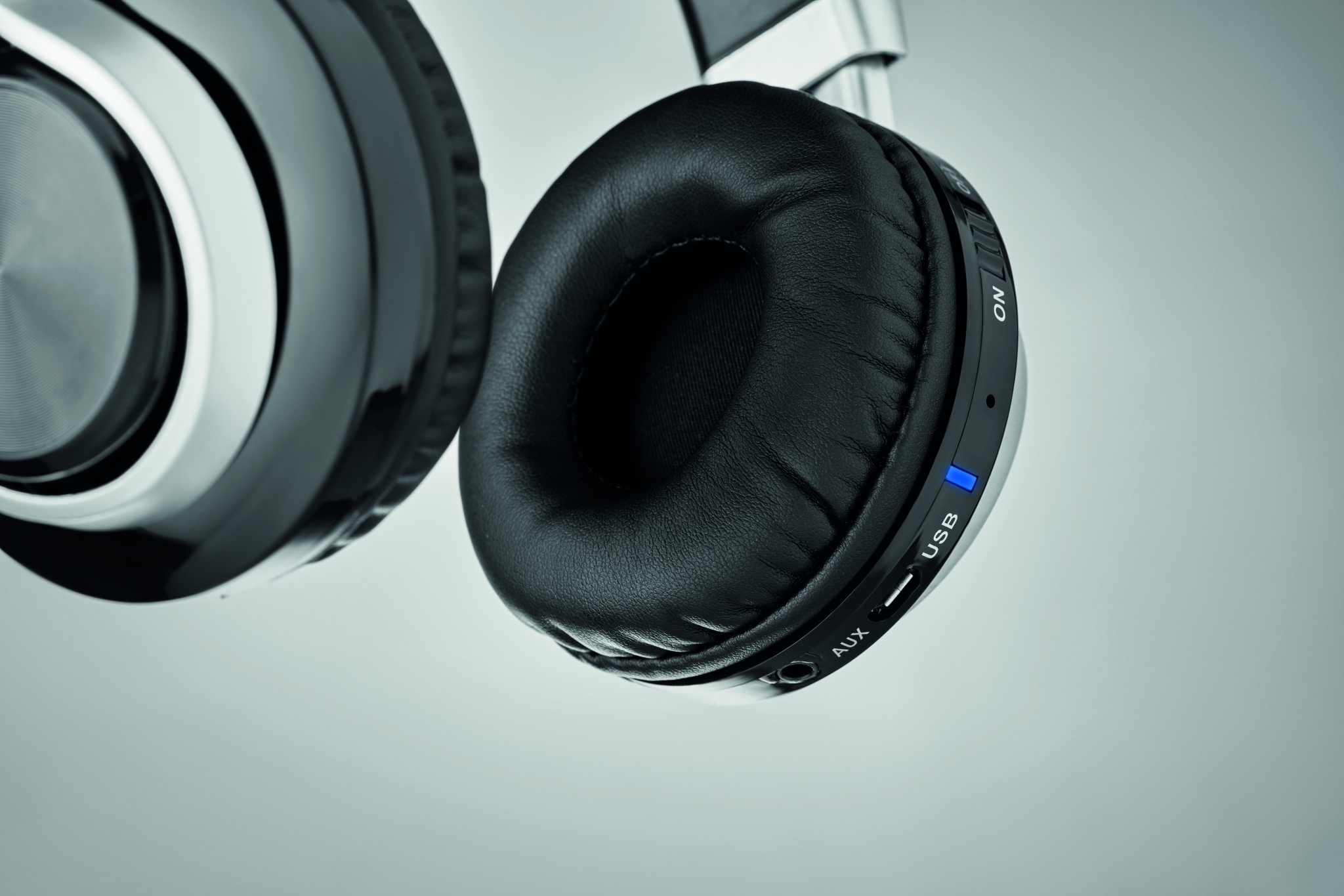 Беспроводные наушники складные с радио. Кабель микро-usb в комплекте. Аккумуляторная батарея мощностью 300 мАч обеспечит работу на протяжении 6 часов.