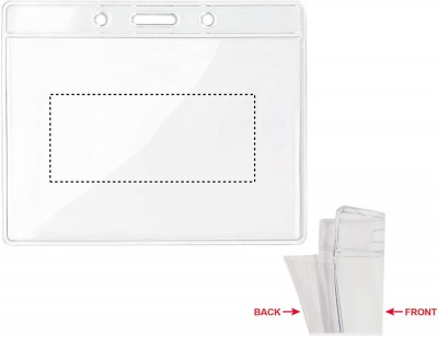 Прозрачный бейдж размером 10х8 см.