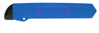 Нож для картона из пластика с отламывающимся лезвием (семь частей лезвия). На закрытой части пластикового корпуса печатаем ваш логотип.