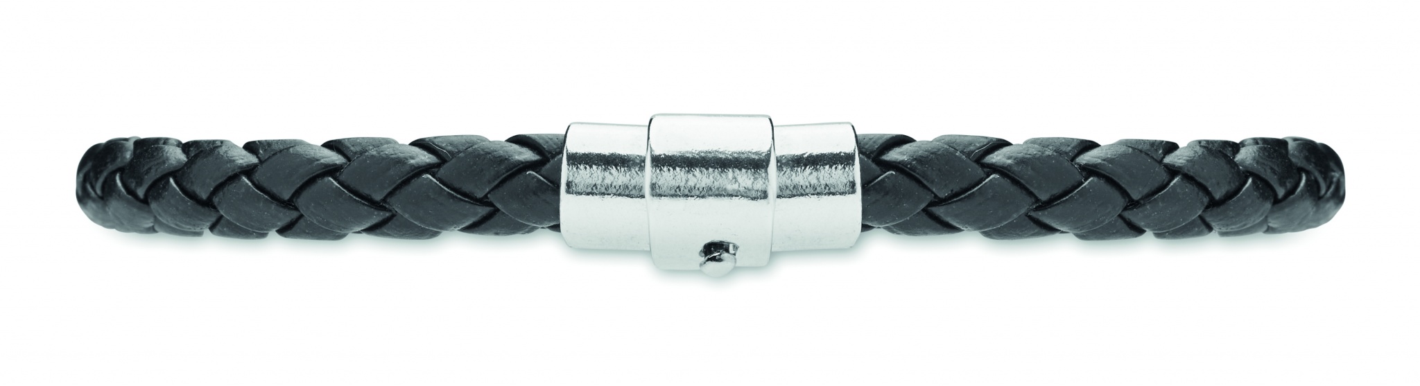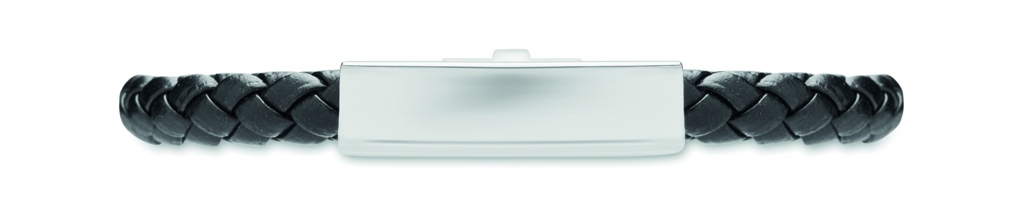 Плетеный браслет из искусственной кожи с фурнитурой из полированной стали. Застежка-защелка. Обхват запястья: 18 см.
