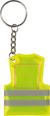 Брелок в виде жилета безопасности со светоотражающими полосами. Мы печатаем ваш логотип поверх полос.