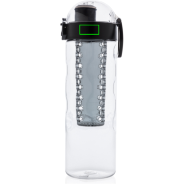 Добавьте в воду немного полезных фруктовых вкусов. Эта дизайнерская бутылка с сотовыми деталями позволяет удобно пить одной рукой. Нажмите кнопку, и крышка откроется. Специальный механизм блокировки предотвращает случайное нажатие кнопки. Включает ручку для переноски. Эта бутылка-заварник изготовлена из прочного и инновационного материала тритан. Без запаха и на 100% не содержит бисфенол А. Объем 700 мл. Зарегистрированный дизайн®