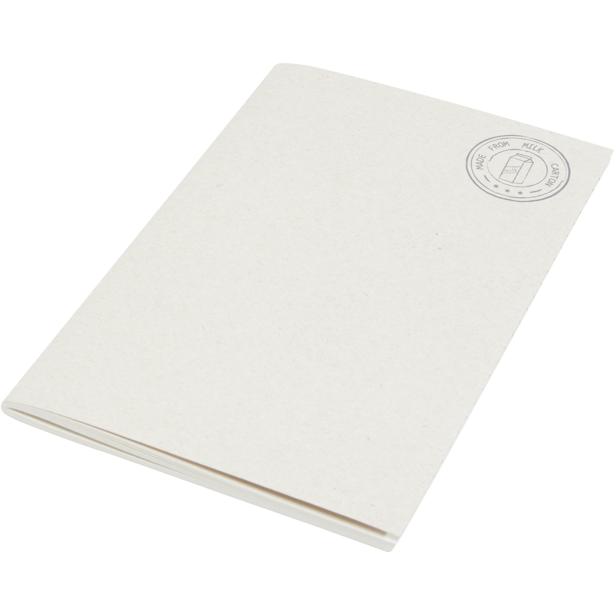 Записная книжка формата А5 с 30 линованными листами плотностью 80 г/м² из переработанных коробок из-под молока (до 70%). Картонные коробки из-под молока собираются, сортируются, перерабатываются и превращаются в бумагу, таким образом действительно превращая мусор во что-то полезное.
