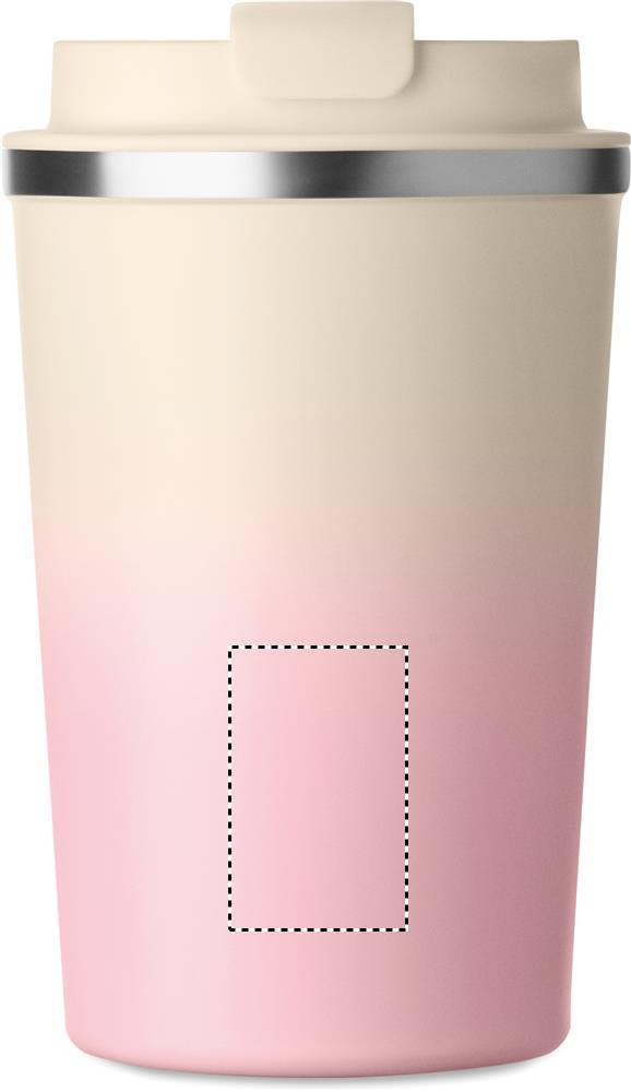 Double wall recycled stainless steel (90 % recycled stainless steel and 10% stainless steel) tumbler with PP lid. Capacity: 350 ml. Leak free.
