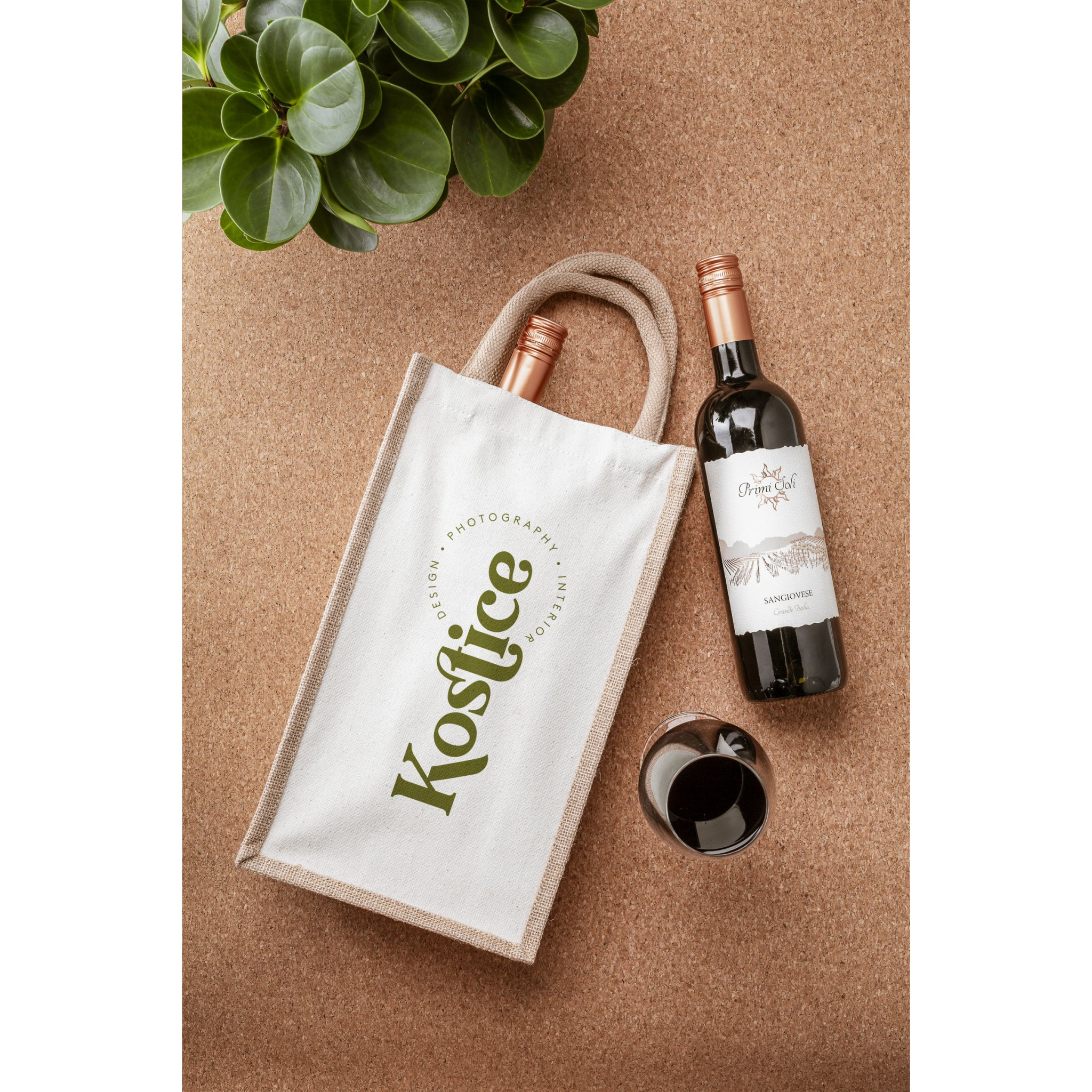 Лого трейд pекламные продукты фото: Двойная сумка для вина из джутового холста