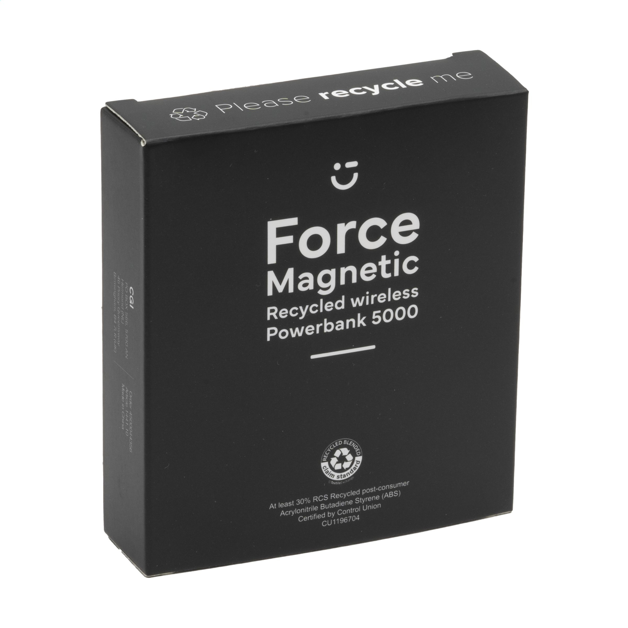 Лого трейд бизнес-подарки фото: Force Magnetic RCS Recycled беспроводной внешний аккумулятор 5000
