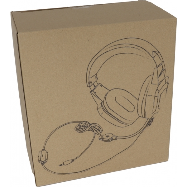 Гарнитура с объемным звуком, микрофоном и регулятором громкости. Благодаря встроенному шумоподавлению вы не услышите никаких фоновых шумов. Ваш логотип будет напечатан на одной чашке наушников.