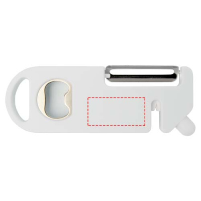 Этот многофункциональный кухонный инструмент объединяет четыре основные функции в одном компактном корпусе. Изготовленный из переработанной пластмассы, он оснащен овощечисткой, открывалкой для бутылок, точилкой для ножей и заостренным наконечником для удаления пятен с картофеля. Встроенное отверстие для подвешивания обеспечивает удобство хранения. Практичный и компактный, он станет универсальным помощником для каждого домашнего повара.