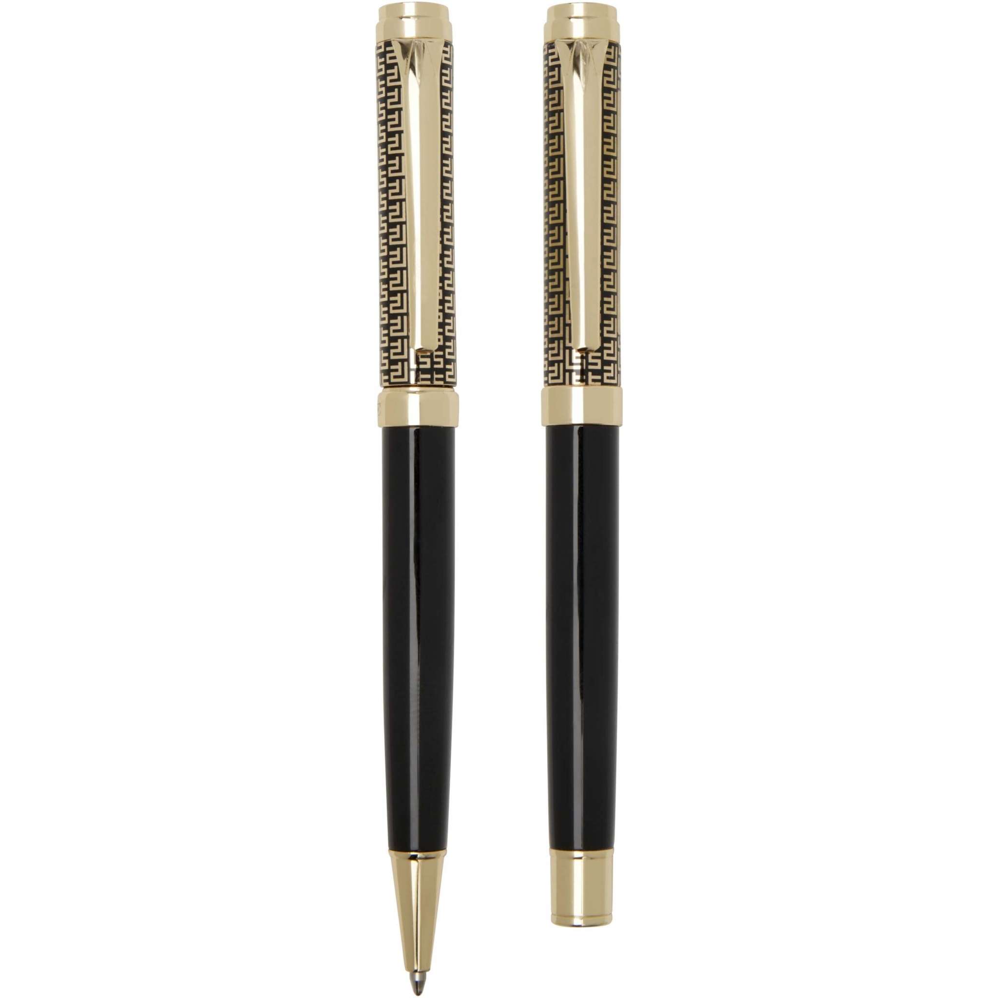 Набор ручек Legato представляет собой элегантное сочетание шариковой ручки и ручки-роллера. Обе ручки имеют верхний корпус из переработанной латуни с золотой хромированной отделкой, нижний корпус с черным напылением, аксессуары из металлического золота с хромированием, логотип LUXE на среднем кольце и синие чернила. Шариковая ручка имеет длину письма 800 метров и размер пера 1,00 мм. Ручка-роллер имеет длину письма 400 метров и размер пера 0,7 мм.