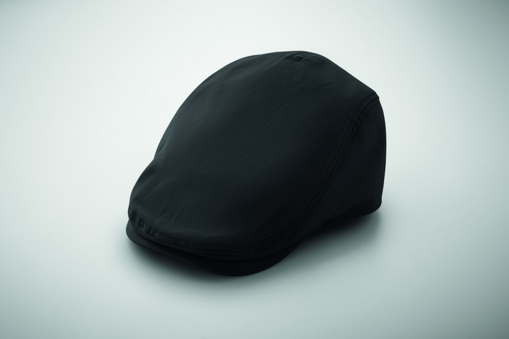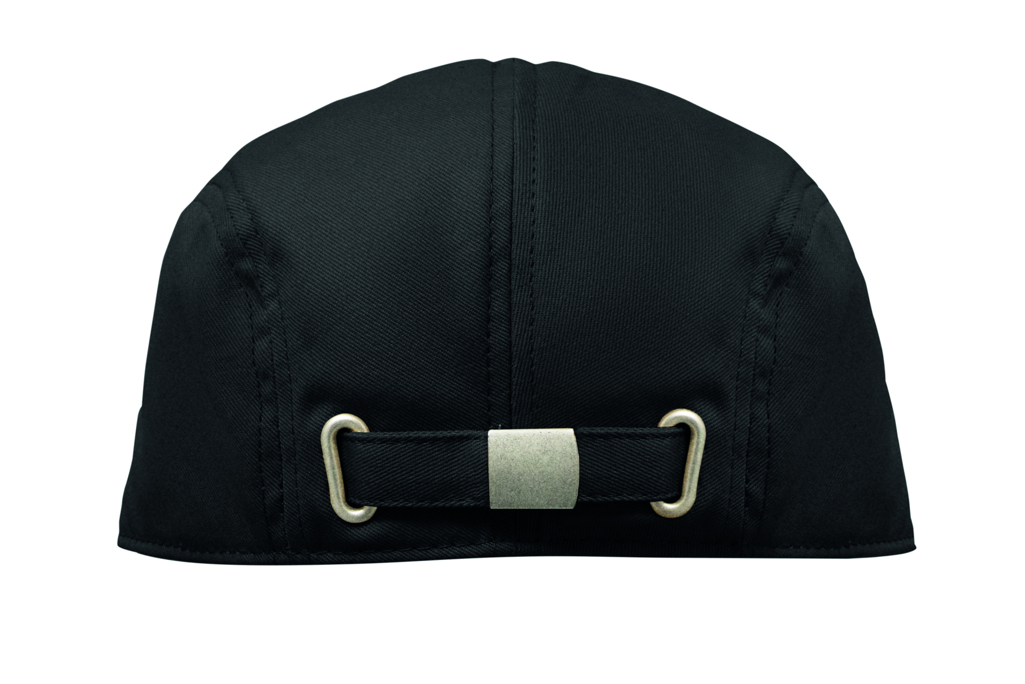 Newsboy flat cap in 235 gr/m² twill cotton with metal buckle closure.
