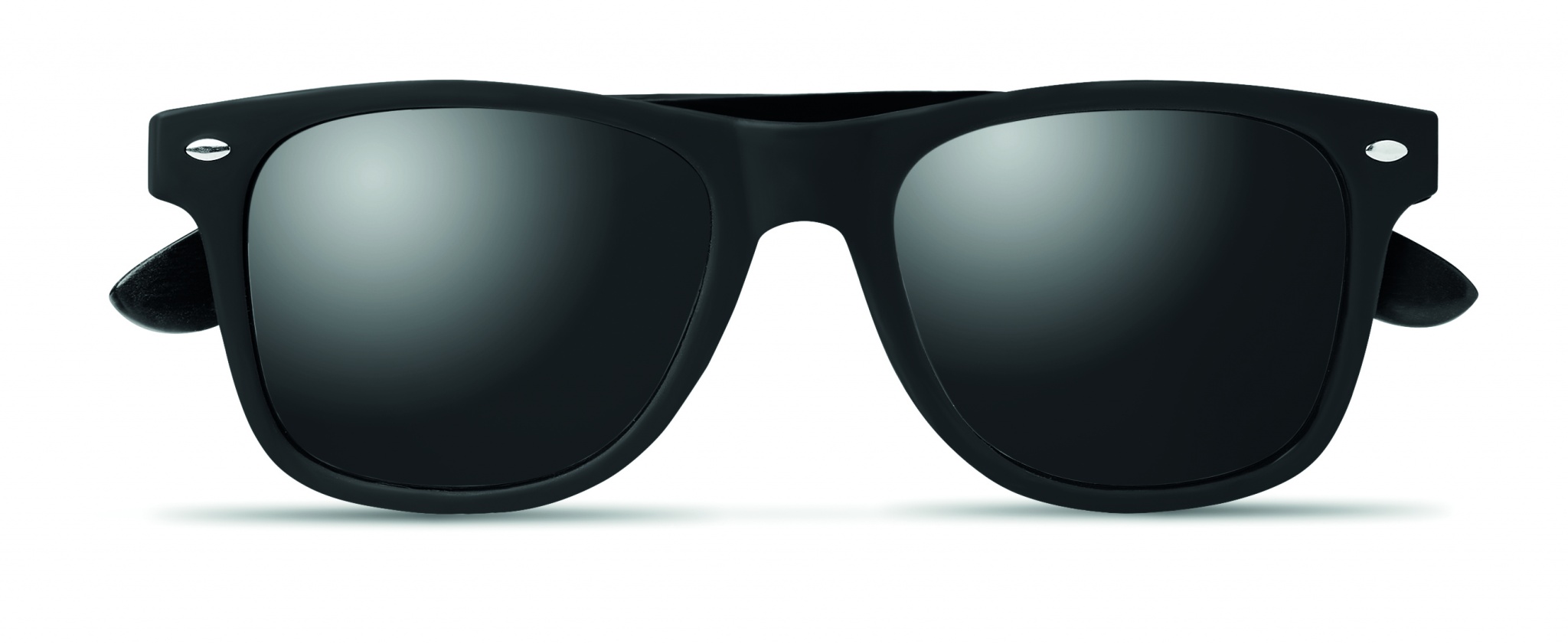 Солнцезащитные очки с бамбуковыми дужками с черным покрытием и зеркальными линзами. Защита UV400.