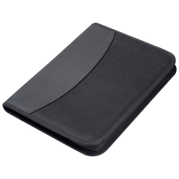 Портфель из прочного полиэстера 600D; с различными отделениями, молнией 270° и нейтральным блокнотом (40 страниц). Мы напечатаем ваш логотип на мягкой кромке из полиуретана.
