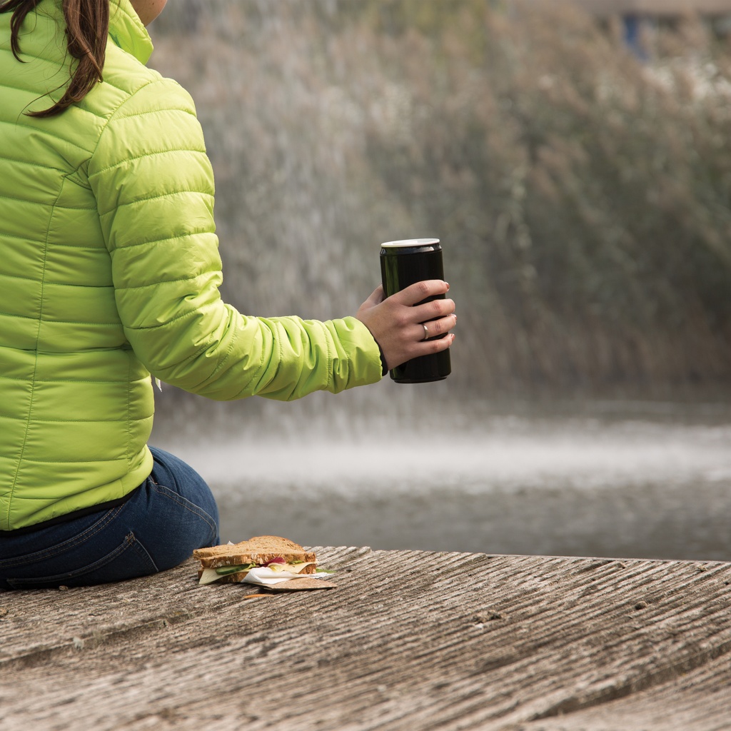 Эта банка для питья (330 мл) на 100% изготовлена из PLA. Благодаря этому банка подлежит компостированию в конце своего жизненного цикла. Банку можно использовать в микроволновой печи и мыть в посудомоечной машине. Упакована в подарочную крафт-упаковку.
