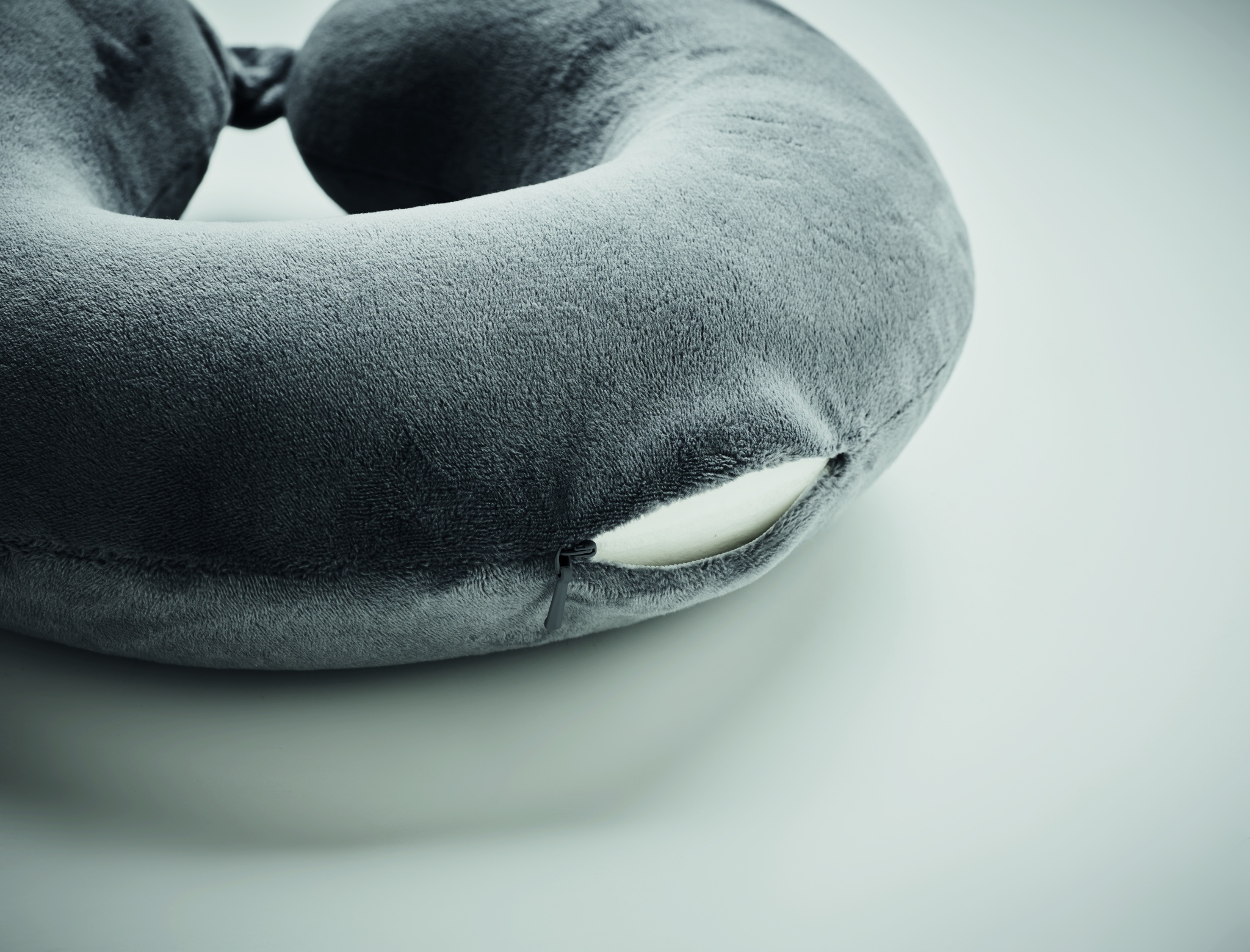 Подушка для путешествий из кристаллической ультра ткани и пенополистирола. Все упаковано в мешок из полиэстера RPET 210D.
