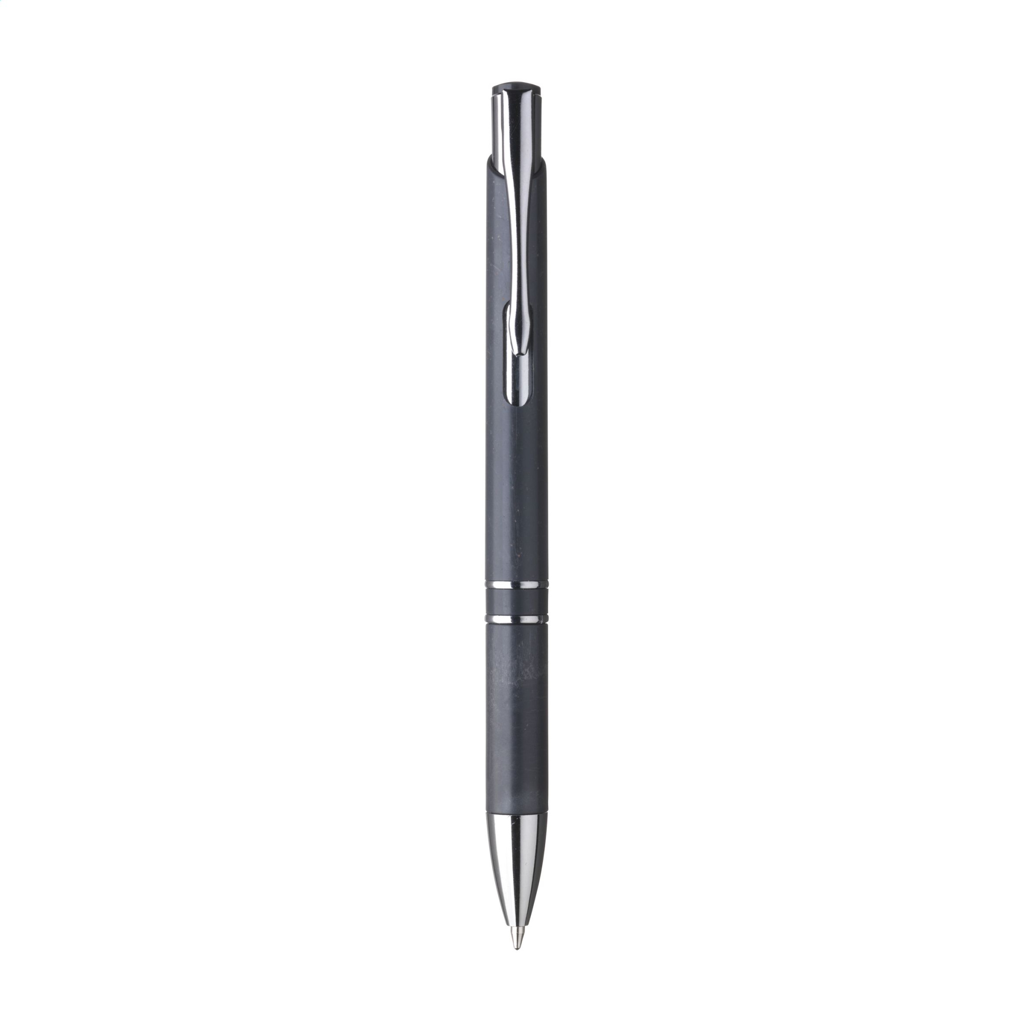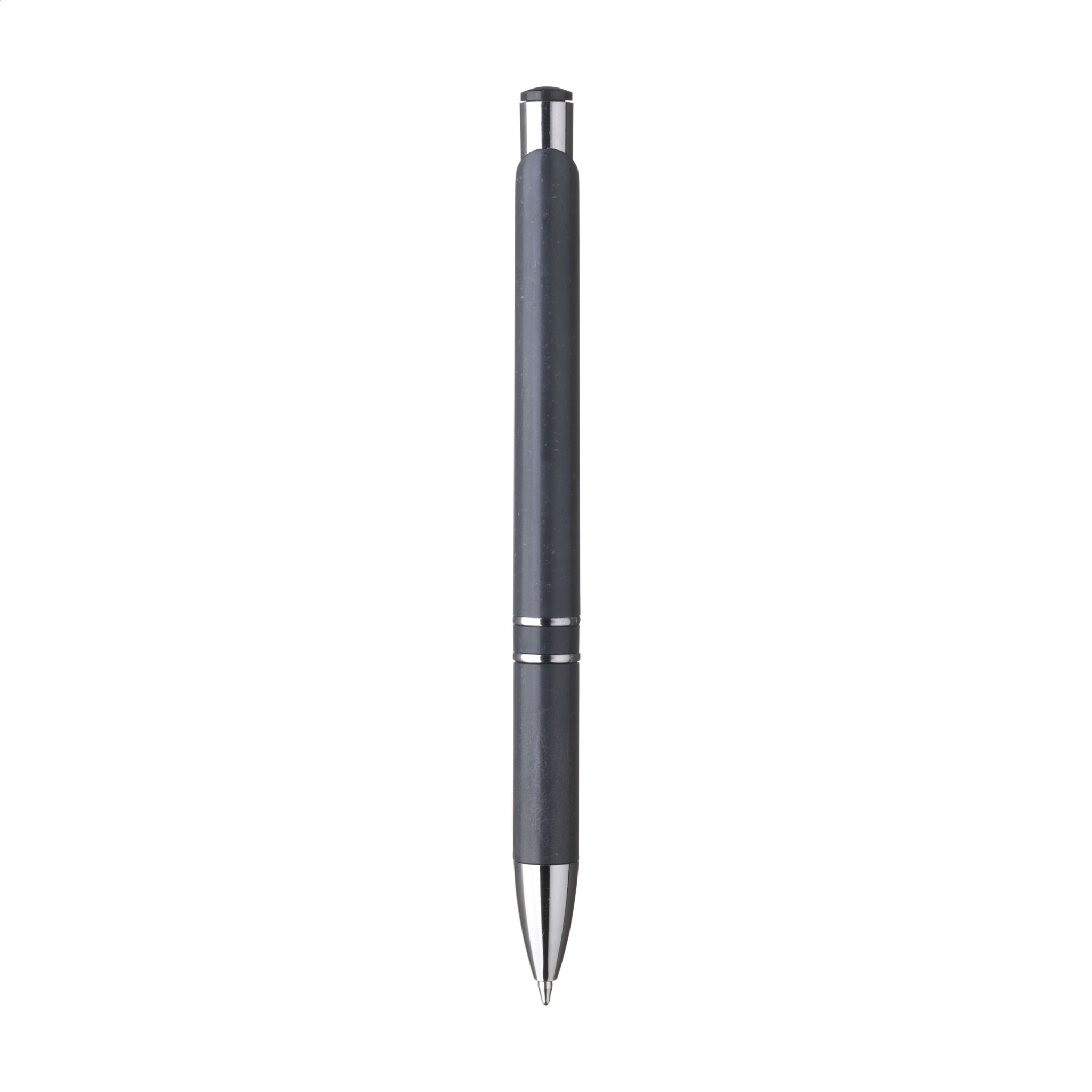 Шариковая ручка с синими чернилами, корпусом, изготовленным на 50% из АБС-пластика и на 50% из пшеничной соломы, металлическим зажимом и пластиковыми хромированными вставками.