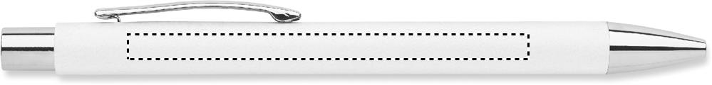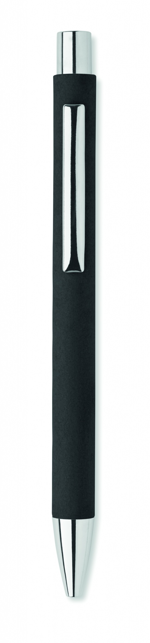 Кнопочная шариковая ручка из переработанной бумаги с металлическим клипом и пластиковой фурнитурой. Синие чернила.